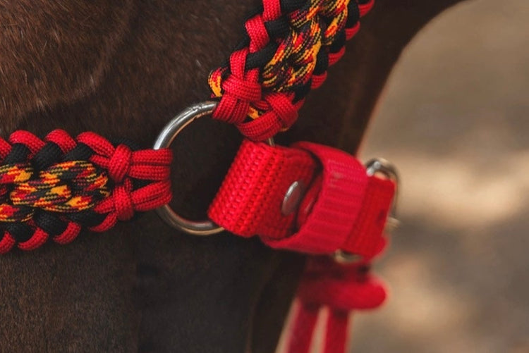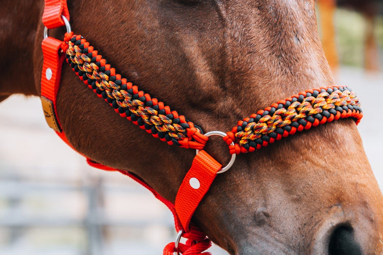 Nuestras jáquimas están trenzadas a mano con paracord de alta resistencia y cuentan con zonas en reata de calidad premium. Además, los herrajes son de acero inoxidable, garantizando durabilidad y seguridad.